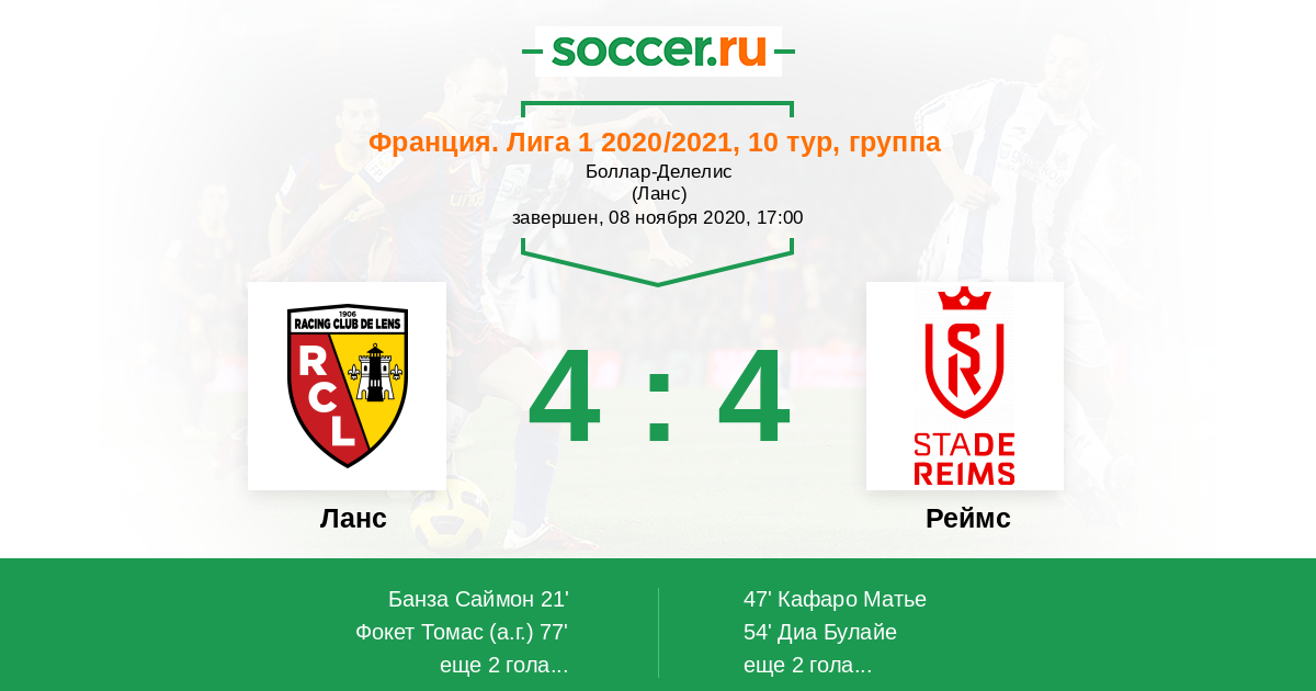 Ланс - Реймс: обзор матча 8 ноября 2020