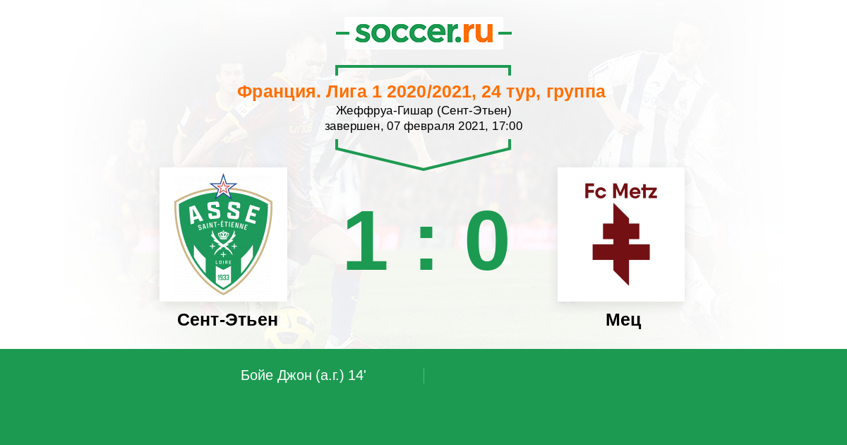 Сент-Этьен - Мец: обзор матча 7 февраля 2021