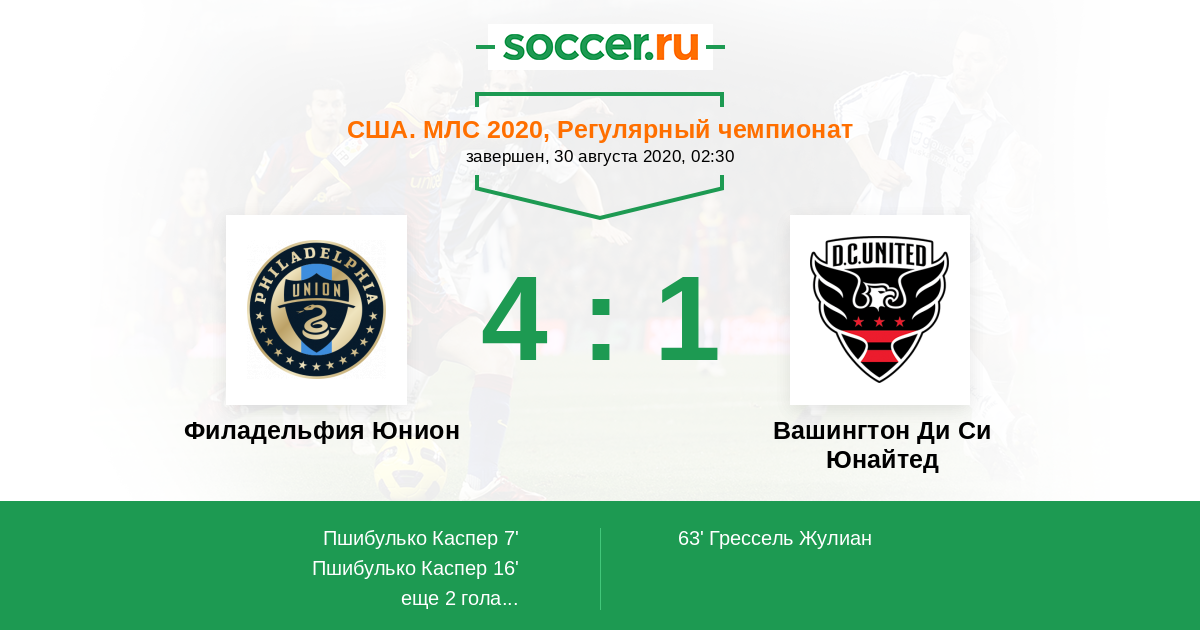 Филадельфия Юнион - Вашингтон Ди Си Юнайтед: обзор матча 30 августа 2020