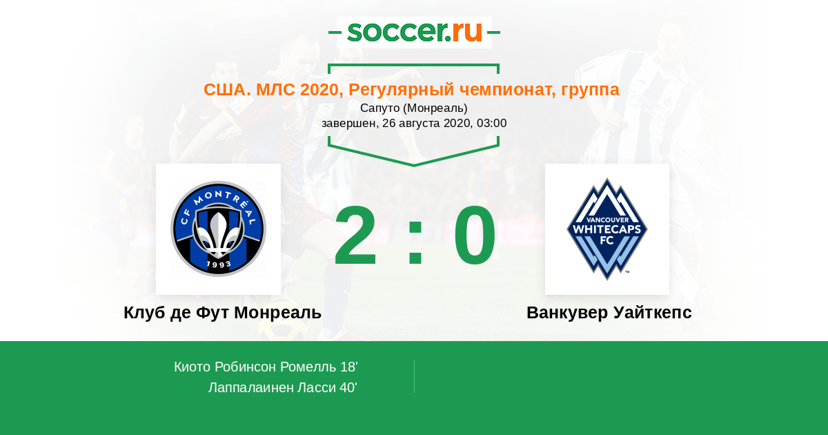 Клуб де Фут Монреаль - Ванкувер Уайткепс: обзор матча 26 августа 2020