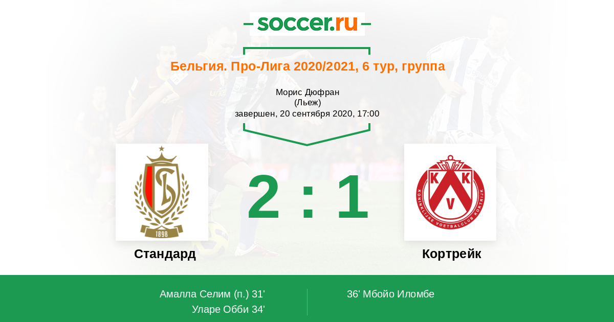 Стандард - Кортрейк: обзор матча 20 сентября 2020