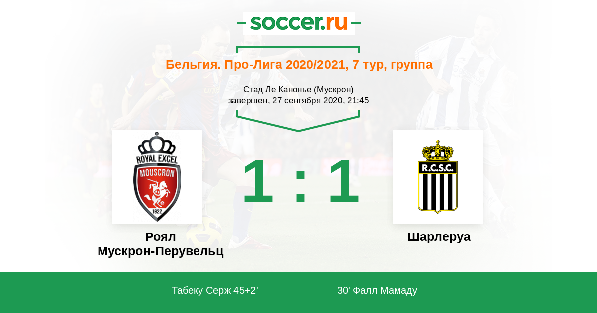 Роял Мускрон-Перувельц - Шарлеруа: обзор матча 27 сентября 2020