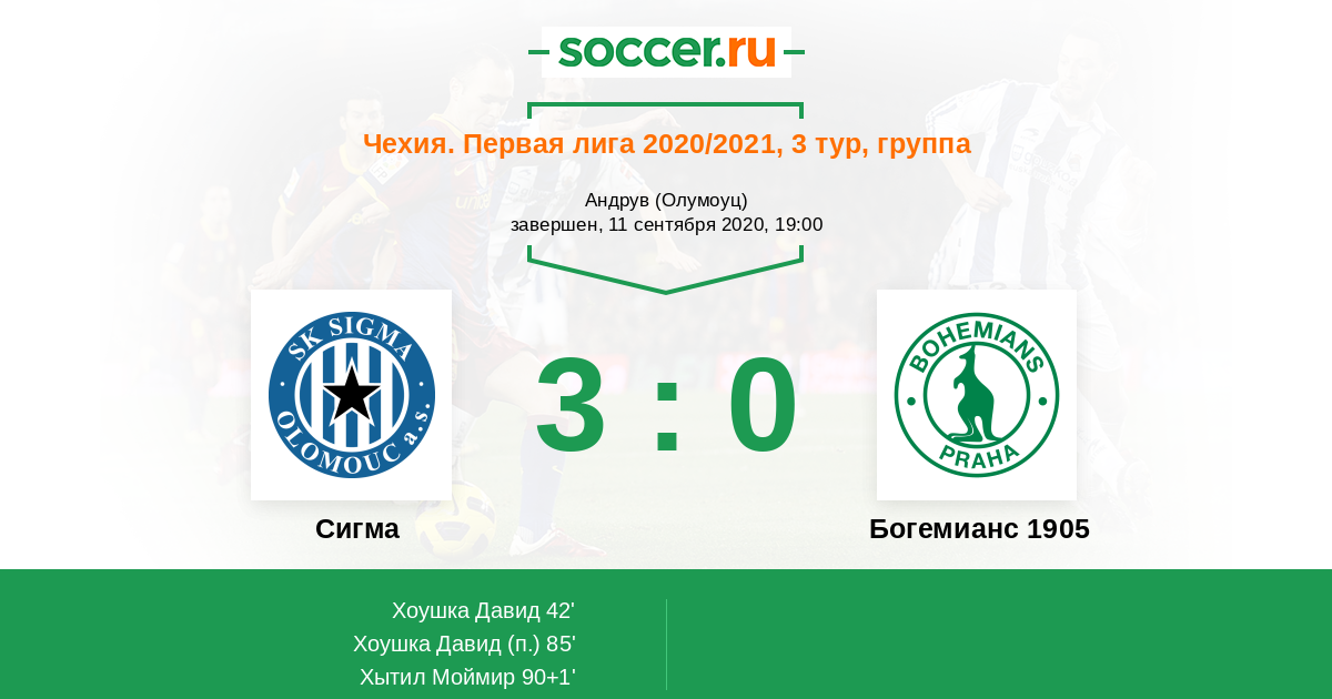 Сигма - Богемианс 1905: обзор матча 11 сентября 2020