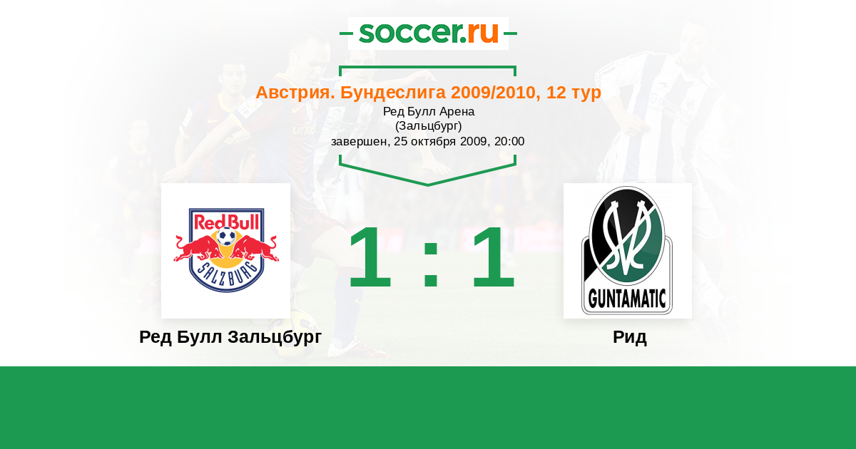 Ред Булл Зальцбург - Рид: обзор матча 25 октября 2009