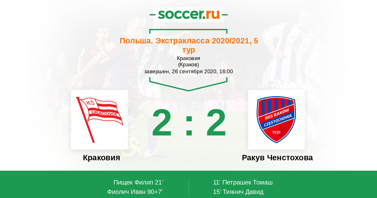 Краковия - Ракув Ченстохова: обзор матча 26 сентября 2020