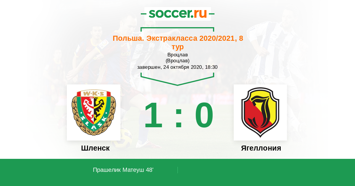 Шленск - Ягеллония: обзор матча 24 октября 2020