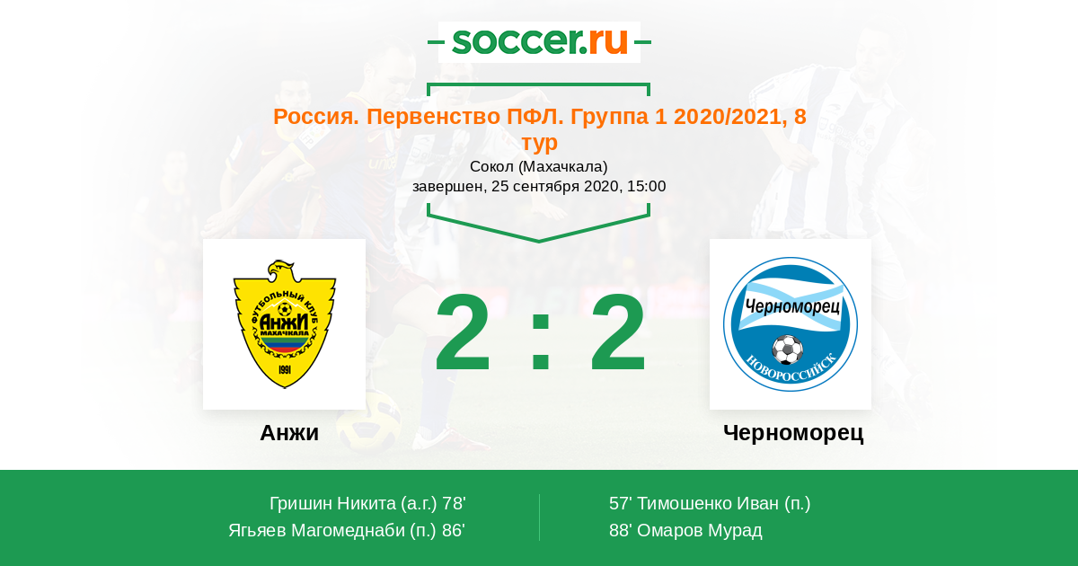 Анжи - Черноморец: обзор матча 25 сентября 2020