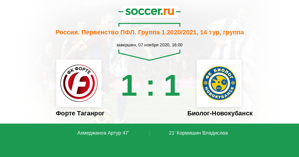 Форте Таганрог - Биолог-Новокубанск: обзор матча 7 ноября 2020