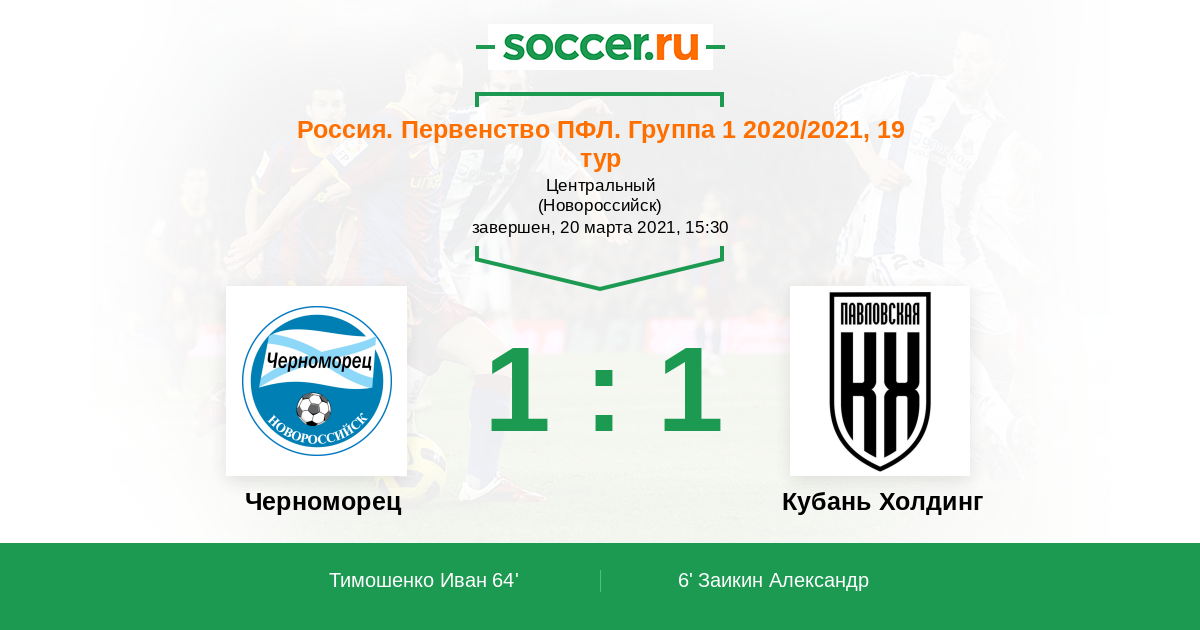 Черноморец - Кубань Холдинг: обзор матча 20 марта 2021