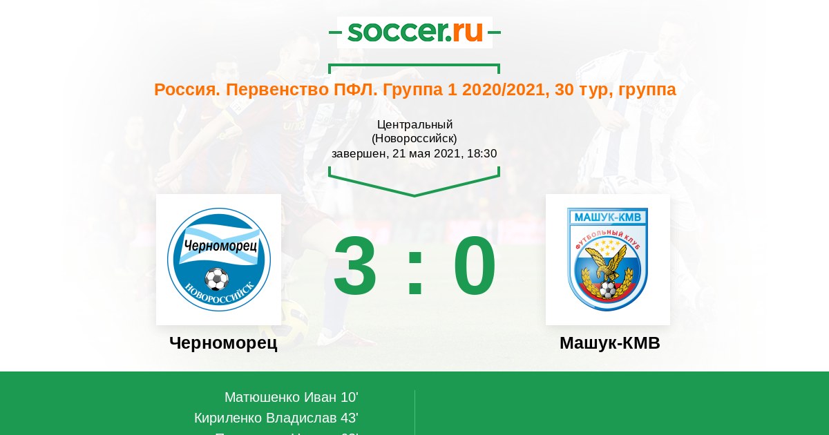 Черноморец - Машук-КМВ: обзор матча 21 мая 2021