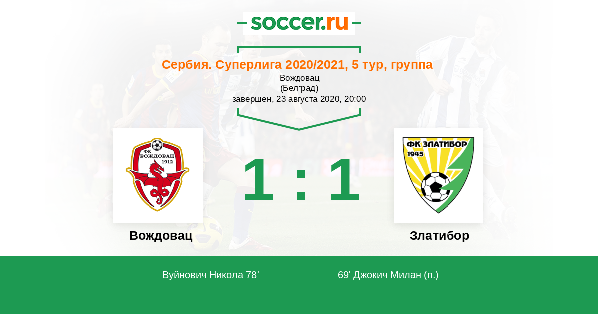 Вождовац - Златибор: обзор матча 23 августа 2020