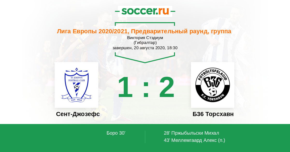 Сент-Джозефс - Б36 Торсхавн: обзор матча 20 августа 2020
