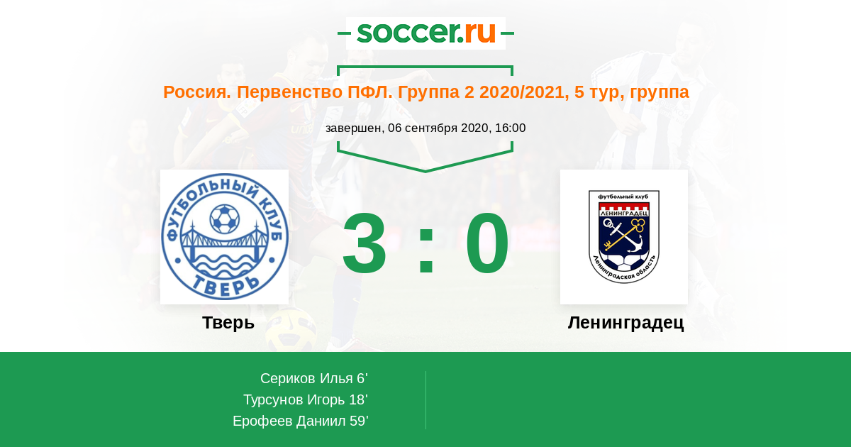 Тверь - Ленинградец: обзор матча 6 сентября 2020