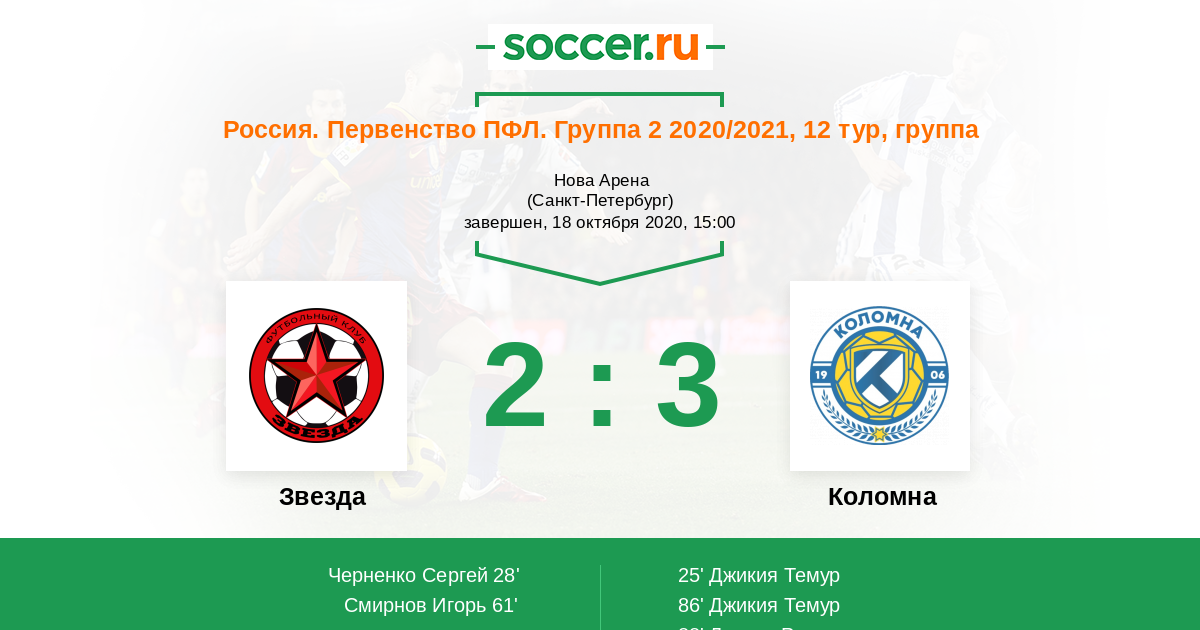 Звезда - Коломна: обзор матча 18 октября 2020