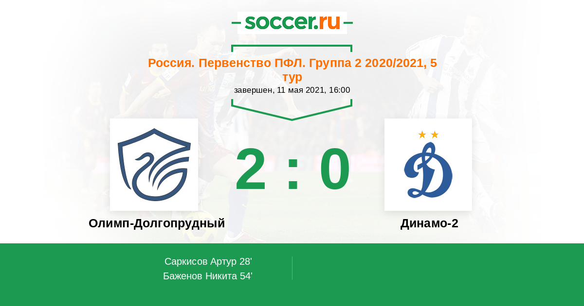 Олимп-Долгопрудный - Динамо-2: обзор матча 11 мая 2021