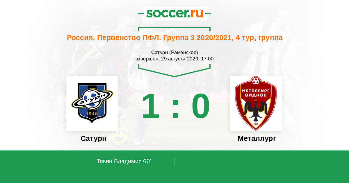Сатурн - Металлург: обзор матча 29 августа 2020