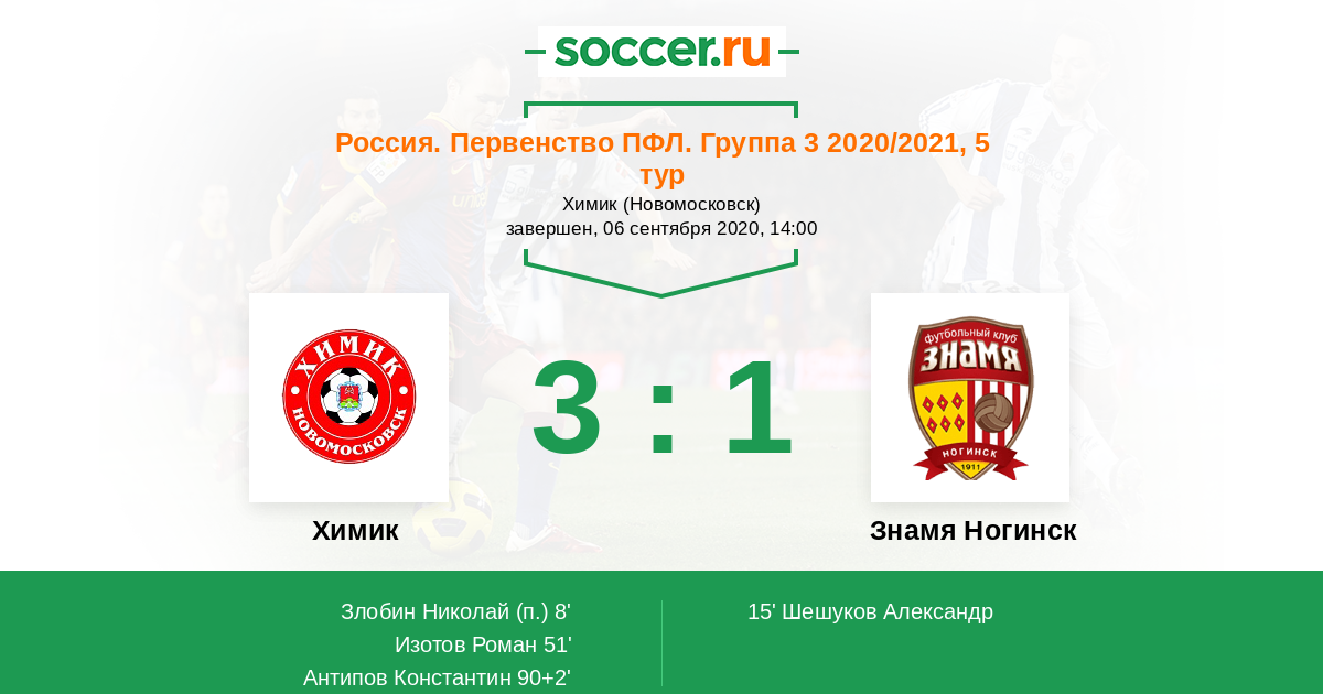 Химик - Знамя Ногинск: обзор матча 6 сентября 2020