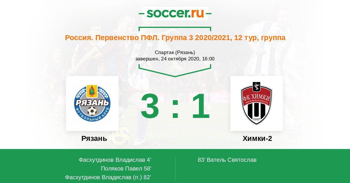 Рязань - Химки-2: обзор матча 24 октября 2020