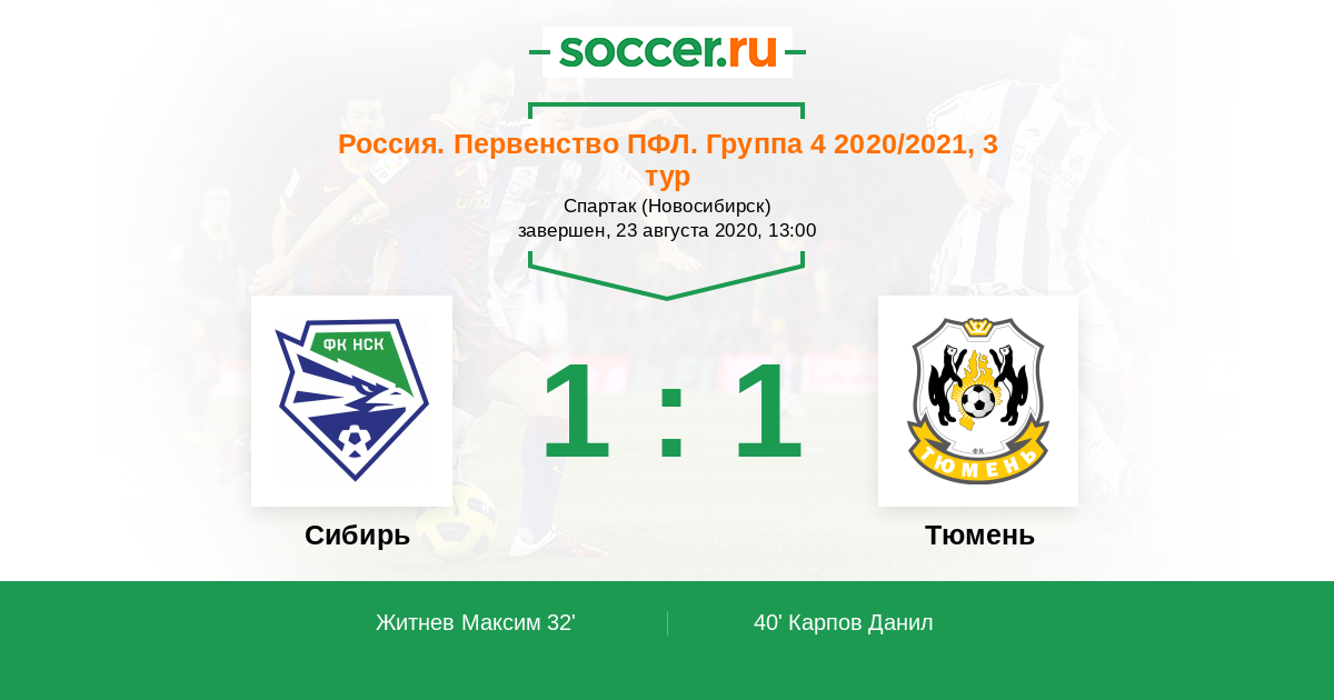Сибирь - Тюмень: обзор матча 23 августа 2020