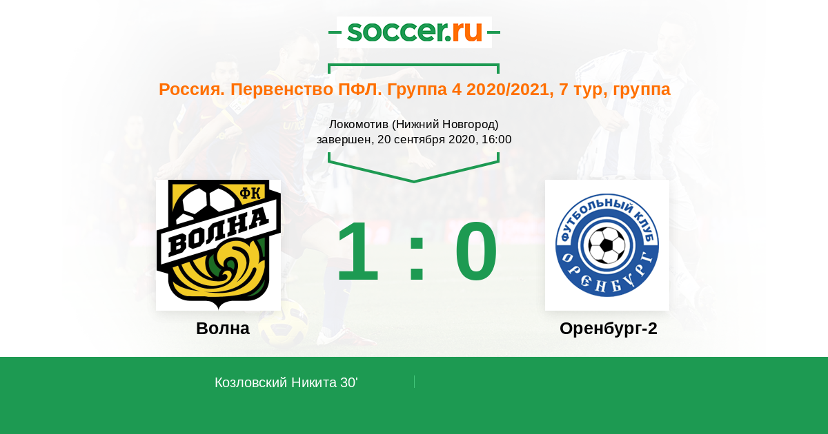 Волна - Оренбург-2: обзор матча 20 сентября 2020