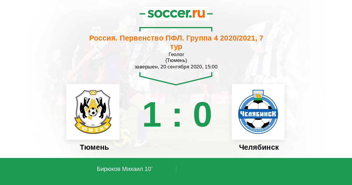 Тюмень - Челябинск: обзор матча 20 сентября 2020