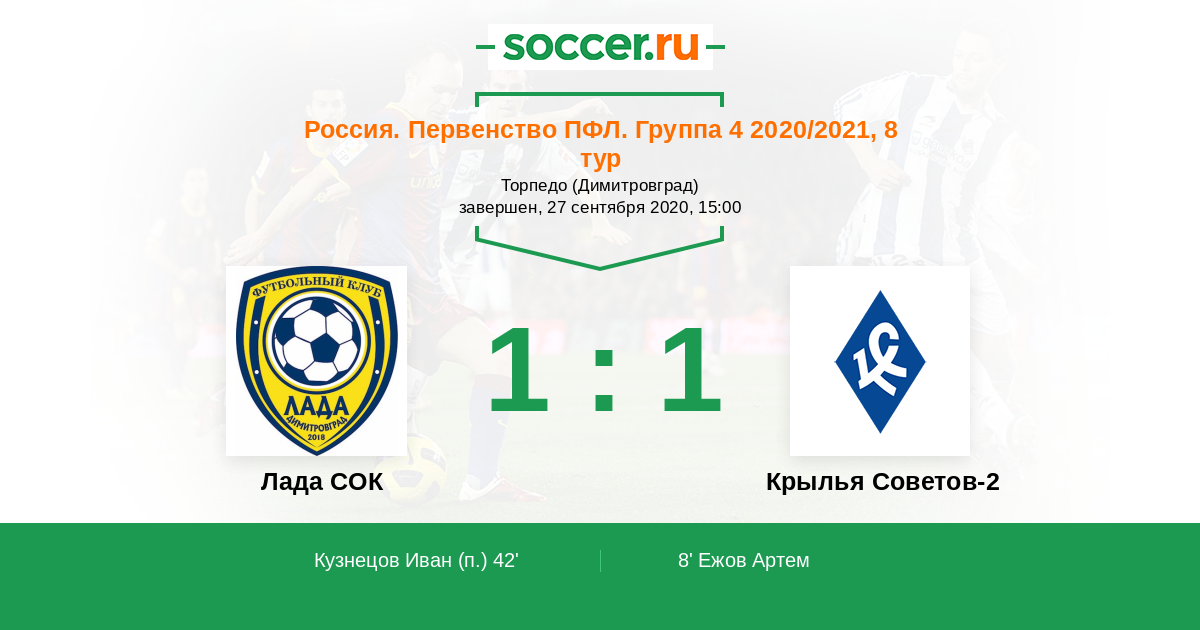 Лада СОК - Крылья Советов-2: обзор матча 27 сентября 2020