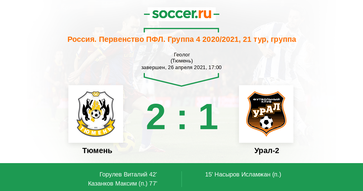 Тюмень - Урал-2: обзор матча 26 апреля 2021