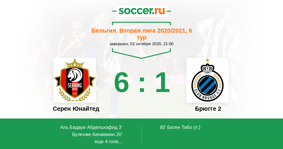 Серен Юнайтед - Брюгге 2: обзор матча 2 октября 2020