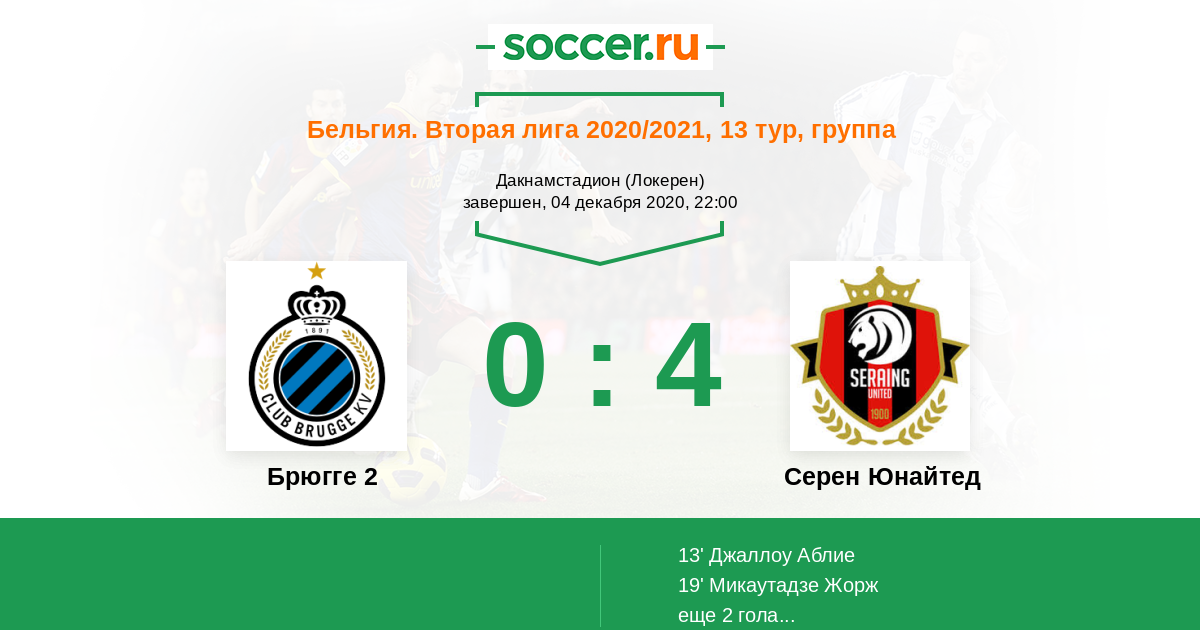 Брюгге 2 - Серен Юнайтед: обзор матча 4 декабря 2020