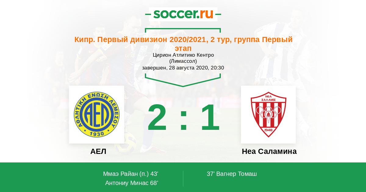 АЕЛ - Неа Саламина: обзор матча 28 августа 2020