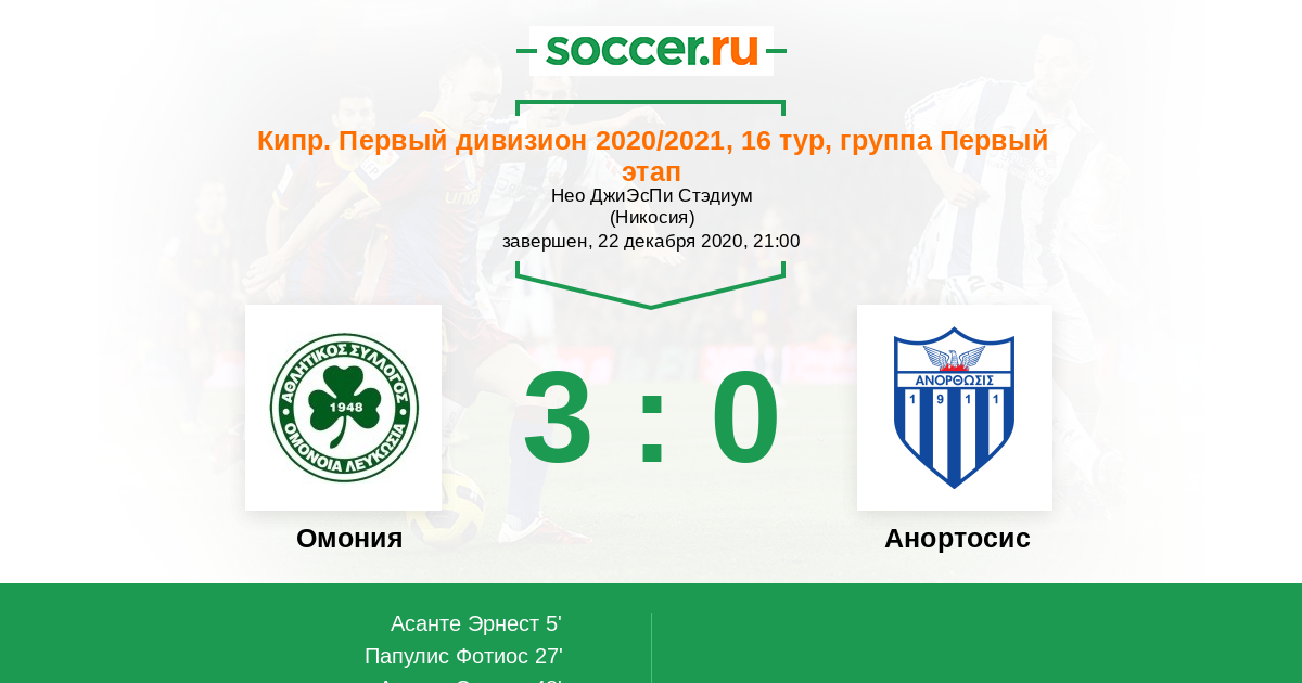 Омония - Анортосис: обзор матча 22 декабря 2020