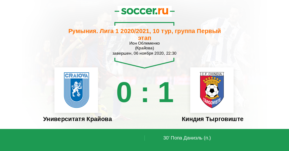 Университатя Крайова - Киндия Тырговиште: обзор матча 6 ноября 2020