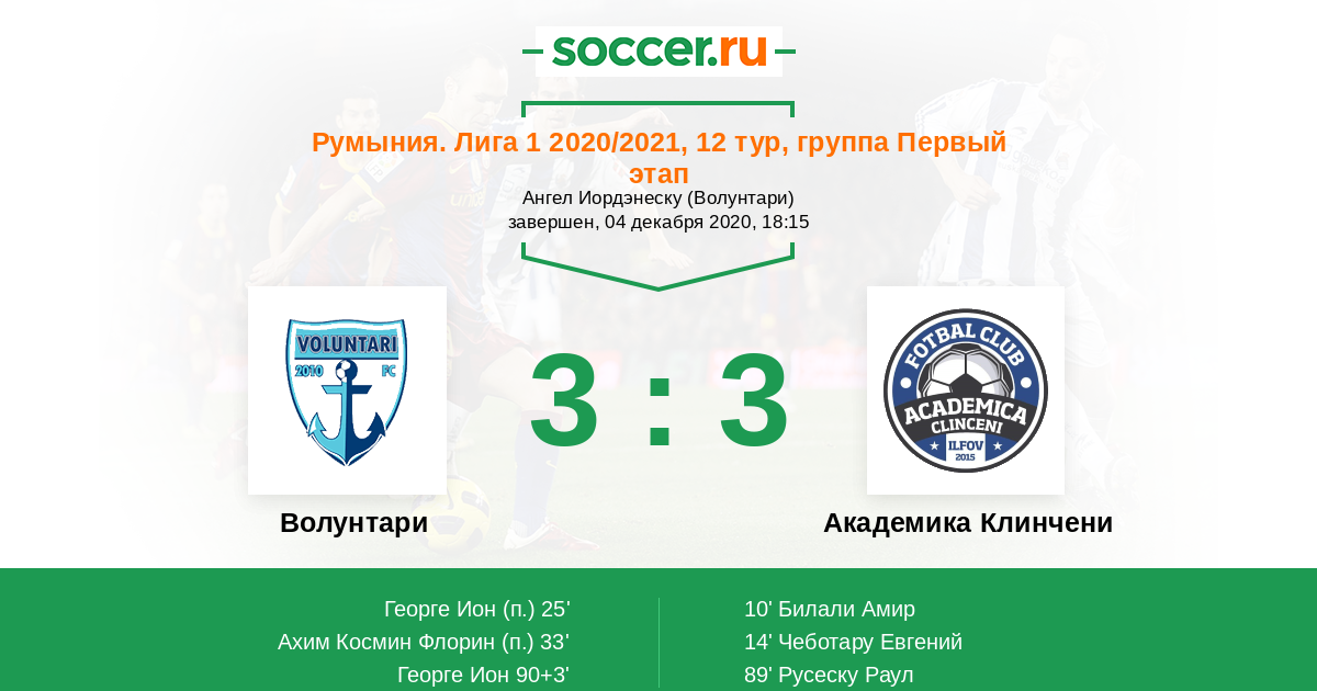 Волунтари - Академика Клинчени: обзор матча 4 декабря 2020