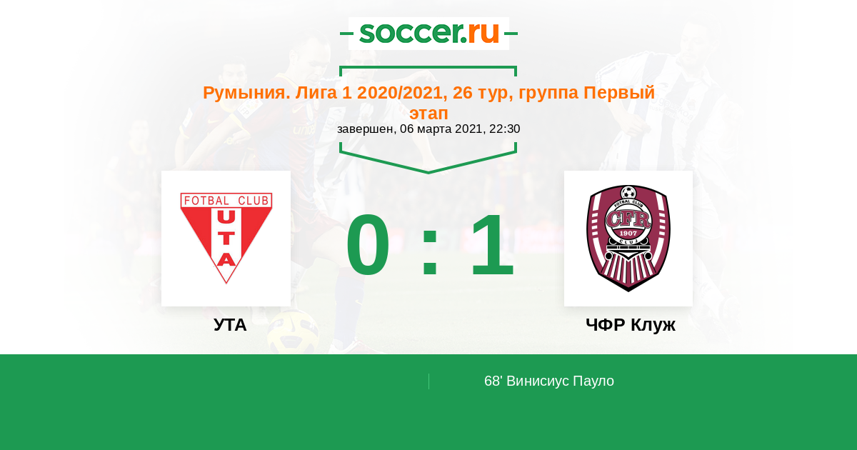 УТА - ЧФР Клуж: обзор матча 6 марта 2021