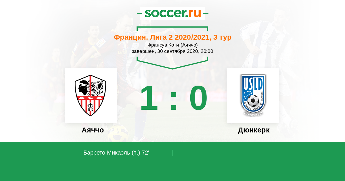 Аяччо - Дюнкерк: обзор матча 30 сентября 2020