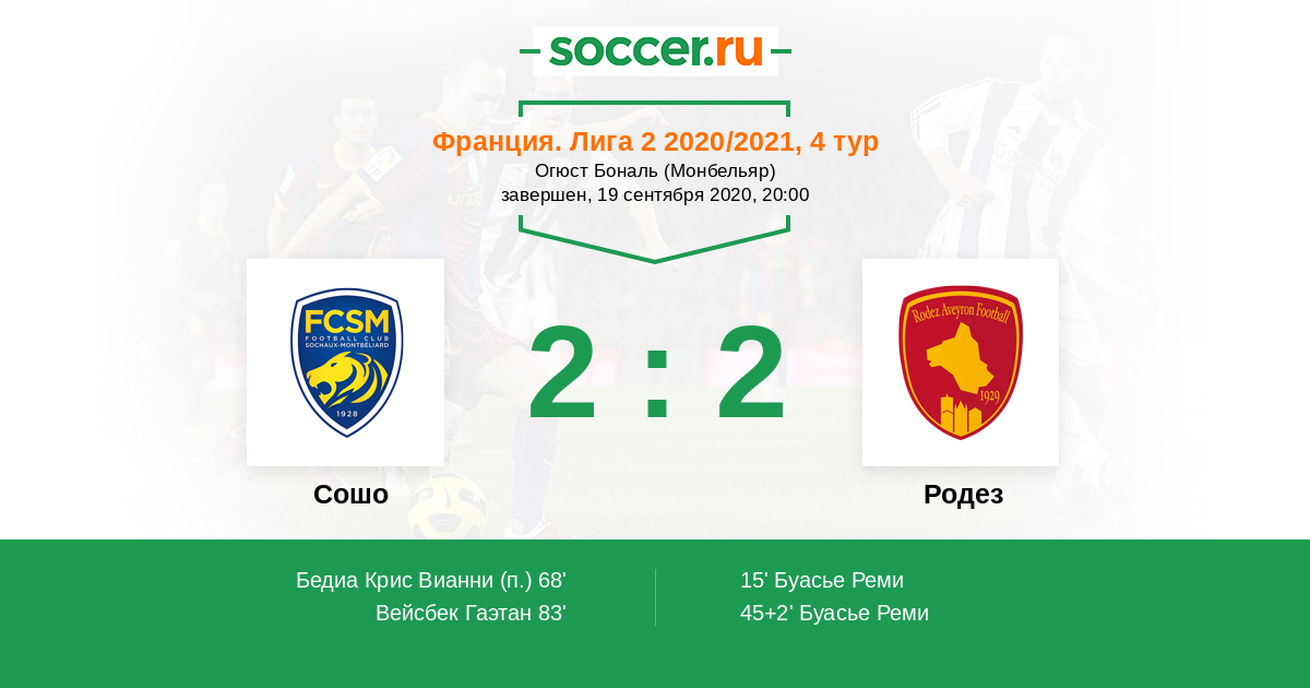 Сошо - Родез: обзор матча 19 сентября 2020