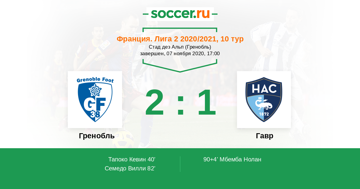 Гренобль - Гавр: обзор матча 7 ноября 2020