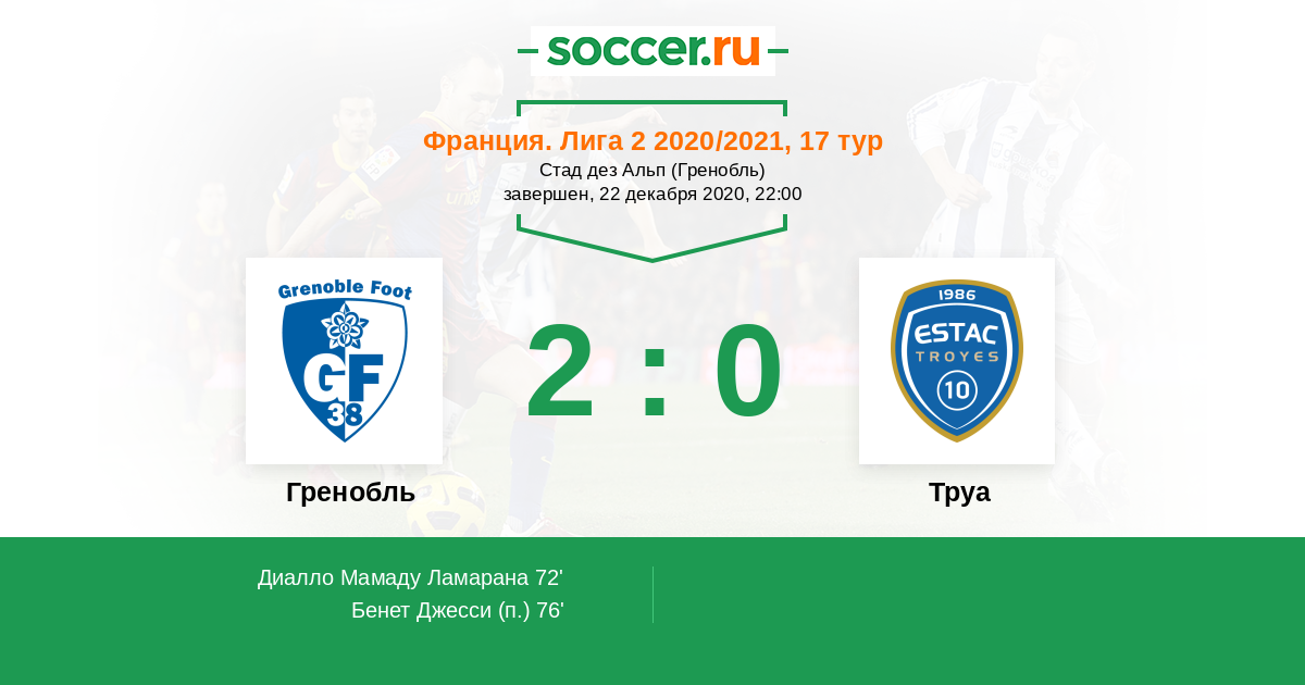 Гренобль - Труа: обзор матча 22 декабря 2020