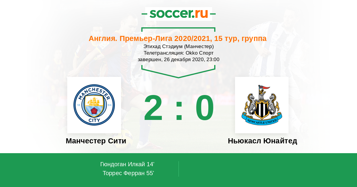 Манчестер Сити - Ньюкасл Юнайтед: обзор матча 26 декабря 2020