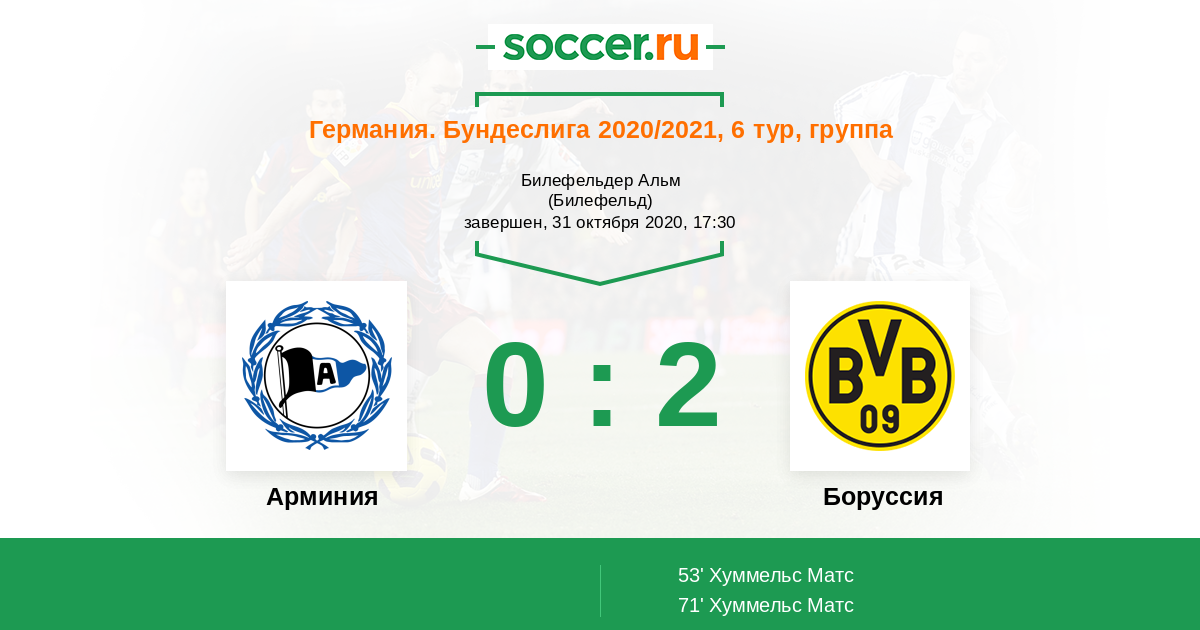 Арминия - Боруссия: обзор матча 31 октября 2020