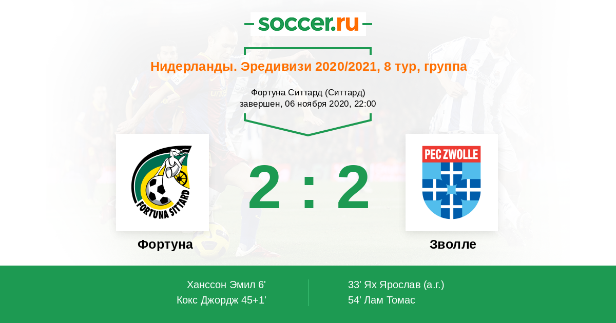 Фортуна - Зволле: обзор матча 6 ноября 2020