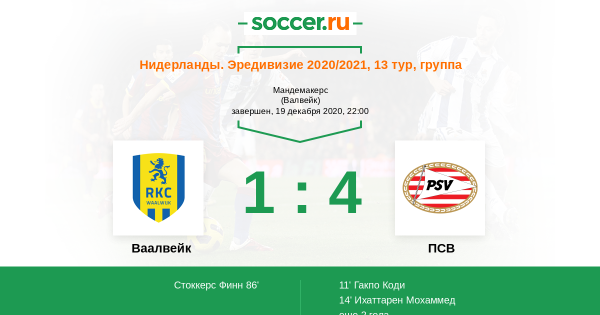 Ваалвейк - ПСВ: обзор матча 19 декабря 2020