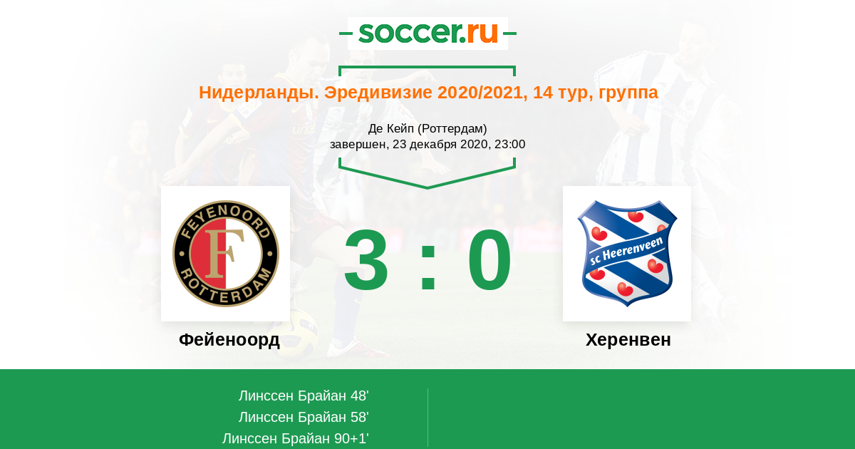 Фейеноорд - Херенвен: обзор матча 23 декабря 2020