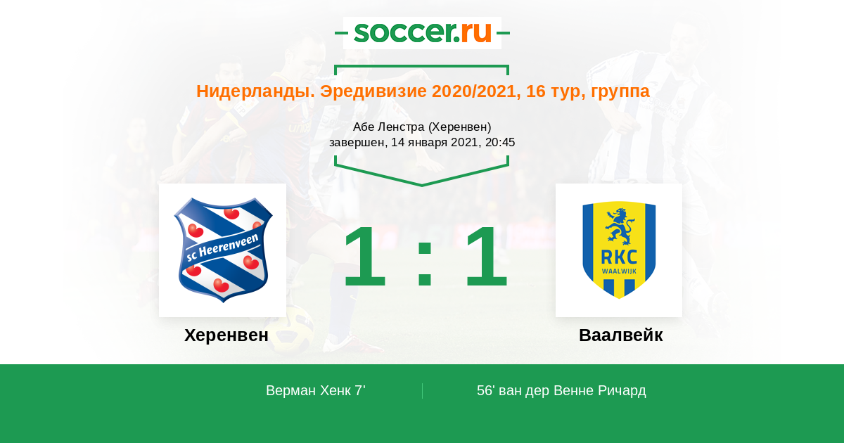 Херенвен - Ваалвейк: обзор матча 14 января 2021