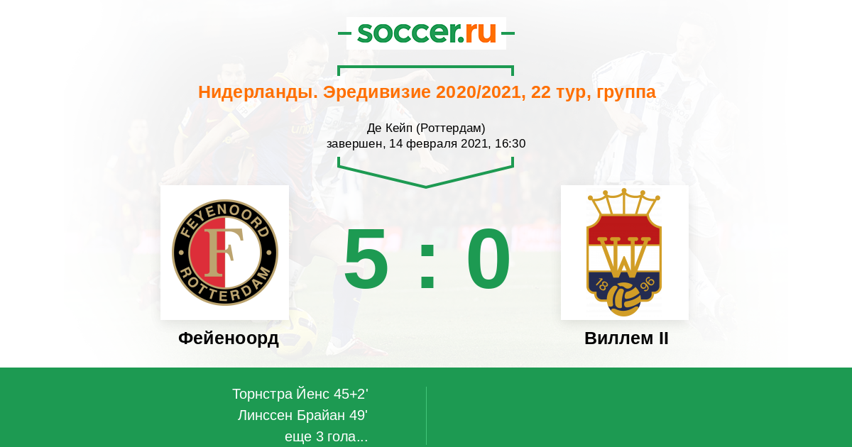 Фейеноорд - Виллем II: обзор матча 14 февраля 2021