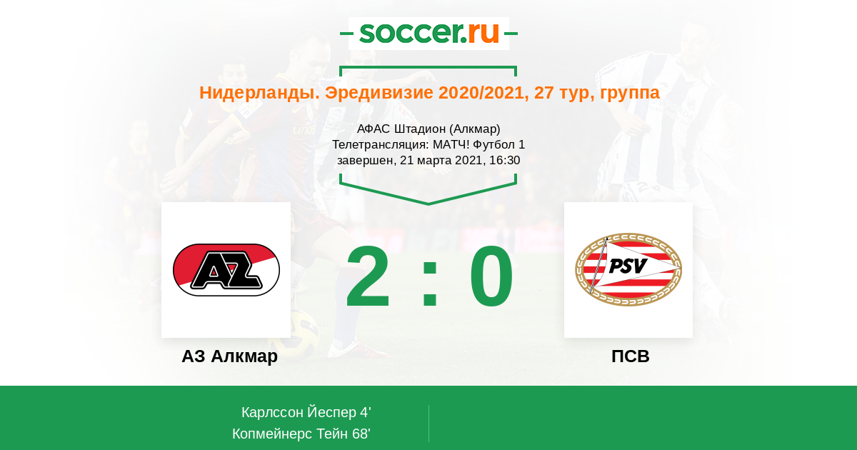 АЗ Алкмар - ПСВ: обзор матча 21 марта 2021