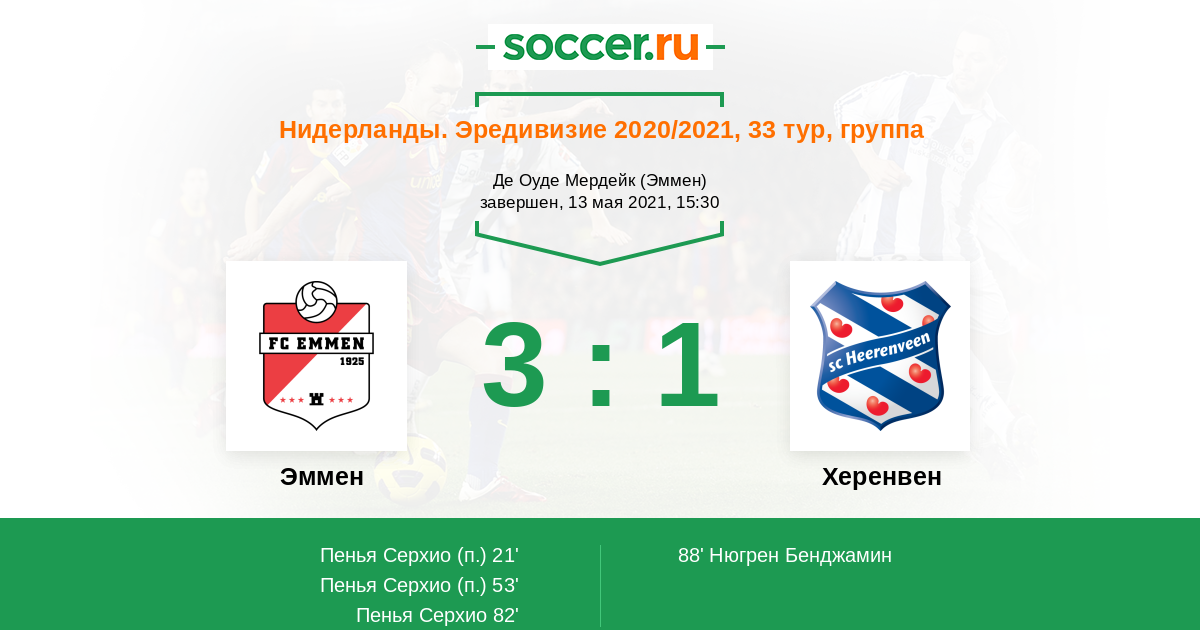 Эммен - Херенвен: обзор матча 13 мая 2021