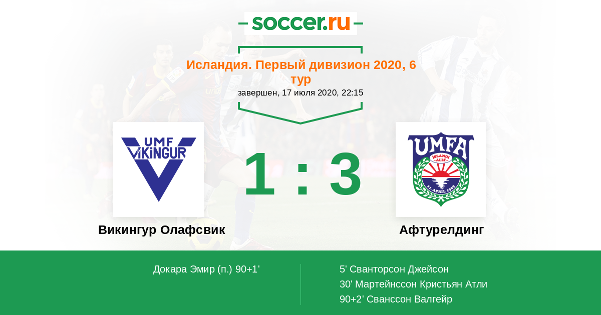 Викингур Олафсвик - Афтурелдинг: обзор матча 17 июля 2020