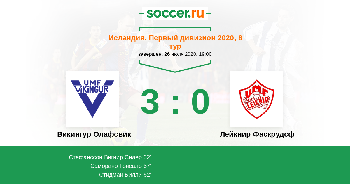 Викингур Олафсвик - Лейкнир Фаскрудсф: обзор матча 26 июля 2020
