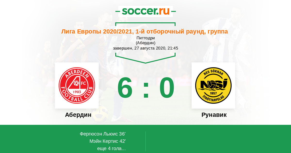 Абердин - Рунавик: обзор матча 27 августа 2020
